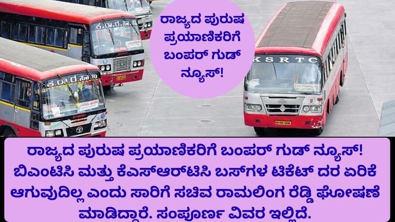 ರಾಜ್ಯದಲ್ಲಿ ಪ್ರತಿದಿನ ಲಕ್ಷಾಂತರ ಜನರು ಬಸ್ ಪ್ರಯಾಣವನ್ನು ಅವಲಂಬಿಸಿರುತ್ತಾರೆ. ವಿಶೇಷವಾಗಿ ಉದ್ಯೋಗ, ವ್ಯವಹಾರ, ಶಿಕ್ಷಣ ಮತ್ತು ದಿನನಿತ್ಯದ ಕಾರ್ಯಗಳಿಗಾಗಿ ಪುರುಷ ಪ್ರಯಾಣಿಕರು ದೊಡ್ಡ ಪ್ರಮಾಣದಲ್ಲಿ ಸಾರ್ವಜನಿಕ ಸಾರಿಗೆ …