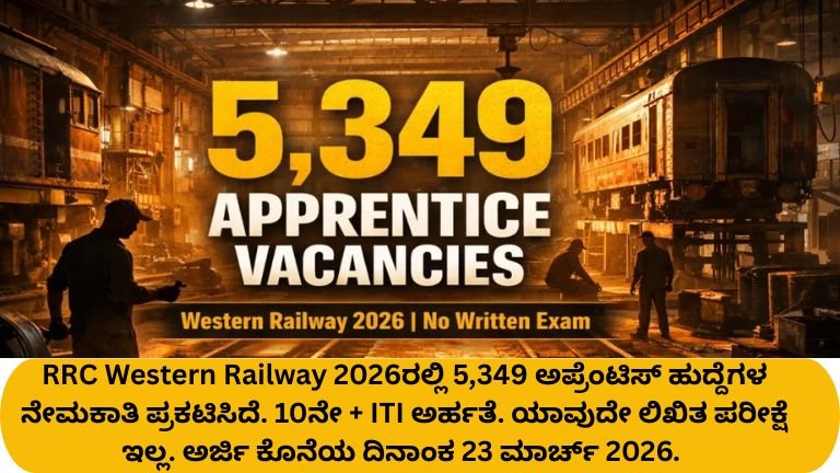 RRC Western Railway Recruitment 2026: 5,349 ಅಪ್ರೆಂಟಿಸ್ ಹುದ್ದೆಗಳು – ಪರೀಕ್ಷೆ ಇಲ್ಲದೆ ರೈಲ್ವೆ ಜಾಬ್! ಇಂದೇ ಅರ್ಜಿ ಹಾಕಿ ಭಾರತೀಯ ರೈಲ್ವೆ ಇಲಾಖೆಯಲ್ಲಿ ಉದ್ಯೋಗ …
